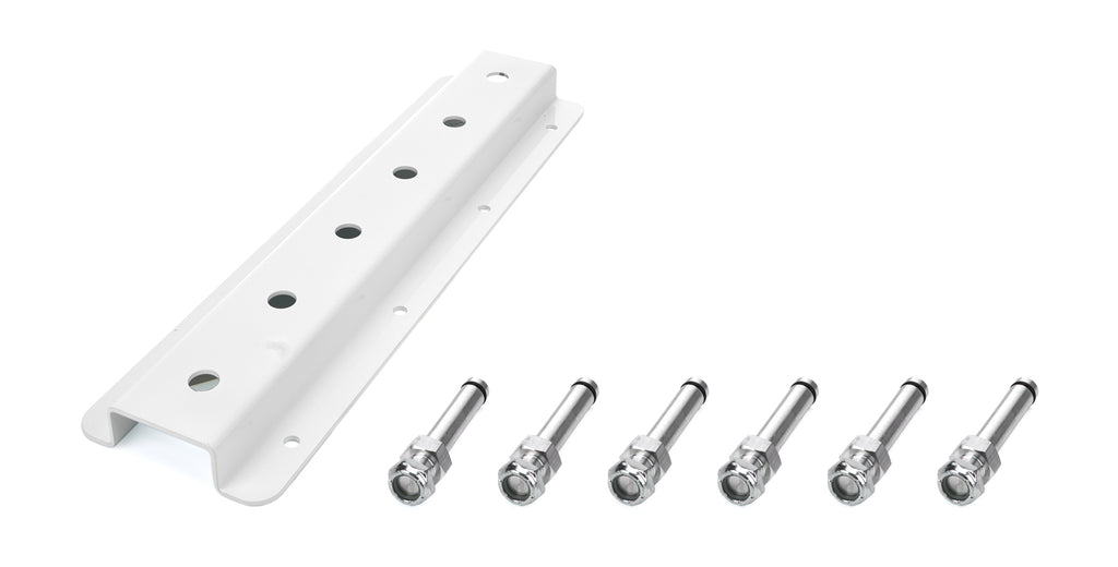 Radius Rod Insert Top Mnt-Double Stack 15in L Radius Rod Rack - Wall Mount - Upper - 15 in Long - 12 Rod Capacity - Aluminum - White Powder Coat - Each