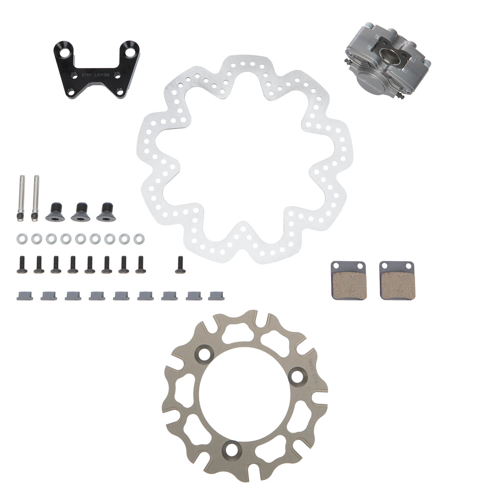 Sprint Car L/F Brake Kit GP200 Brake System - GP200 - Front - Driver Side - 2 Piston Caliper - 10.5 in Drilled / Scalloped Rotor - Aluminum - Gray Anodized - Sprint Car - Kit